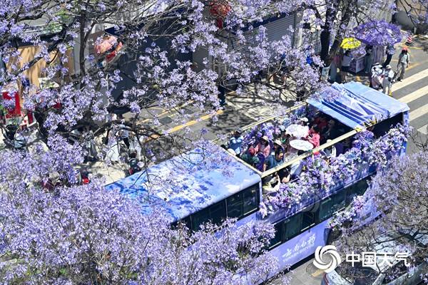 云南昆明蓝花楹巴士赏花路线颇受欢迎。(李嘉娴/中新社/视觉中国/版权图片 来源视觉中国)