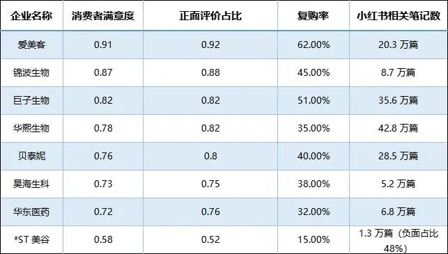 核心好评点:性价比高(润百颜玻尿酸价格仅为进口品牌 60%)、产品线丰富。